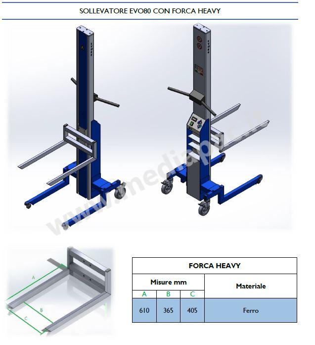 Gambe anteriori ribassate per favorire inserimento sotto bancali o simili