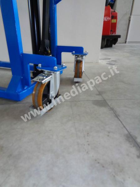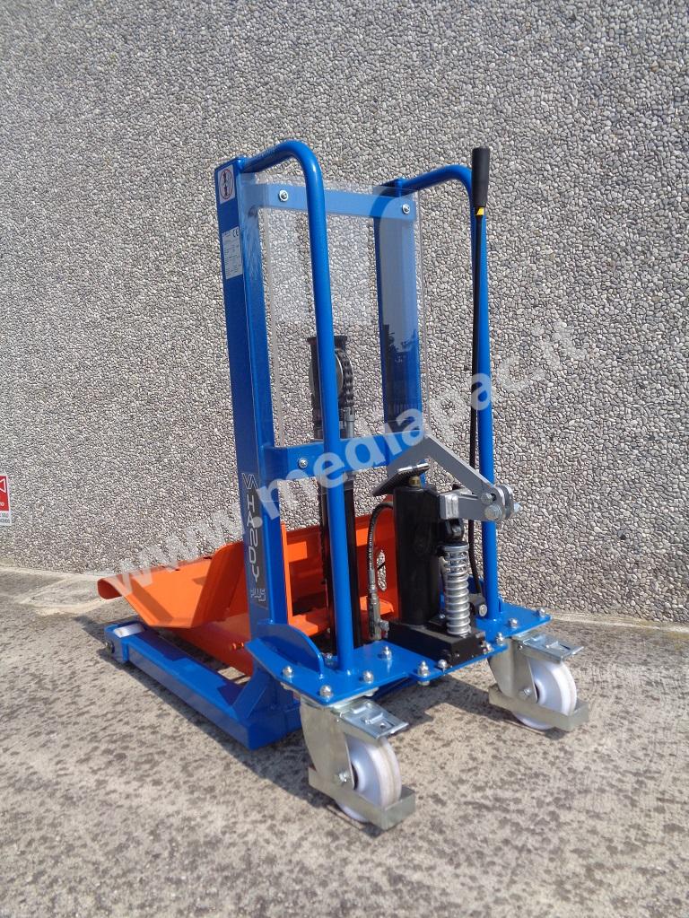 HANDY PLUS è un sollevatore manuale con portata 500 kg, ideale per il trasporto di bobine o per il posizionamento di materiali vari, come stampi, parti mobili di etichettatrici e quant'altro. Leggero e maneggevole può essere dotato di pompa a pedale o di pompa a leva offrendo così la soluzione ideale per qualsiasi esigenza.Nella versione base l'elevazione è di 780 mm.