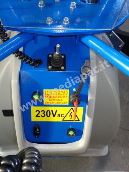 Dotato di batterie piombo acido 2x12V55Ah senza manutenzione e raddrizzatore a bordo 24V 6A. Due ruote fisse e due ruote pivotanti con freno. Sono disponibili vari accessori a completamento.