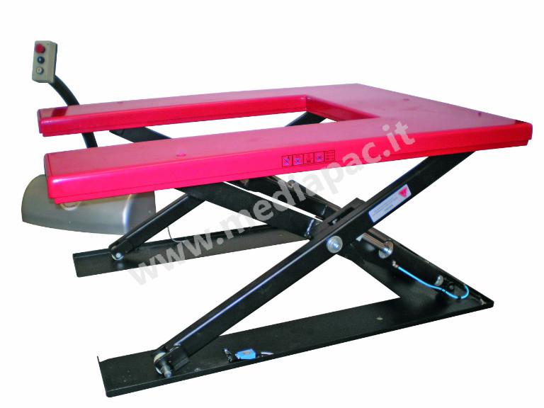 Piattaforme elettro-idrauliche fisse con comandi elettrici a mezzo pulsantiera remota, in versione ultrapiatta. Bordo di sicurezza perimetrale anti schiacciamento Queste piattaforme sono ideali per qualsiasi tipo di ambiente lavorativo e installazione,