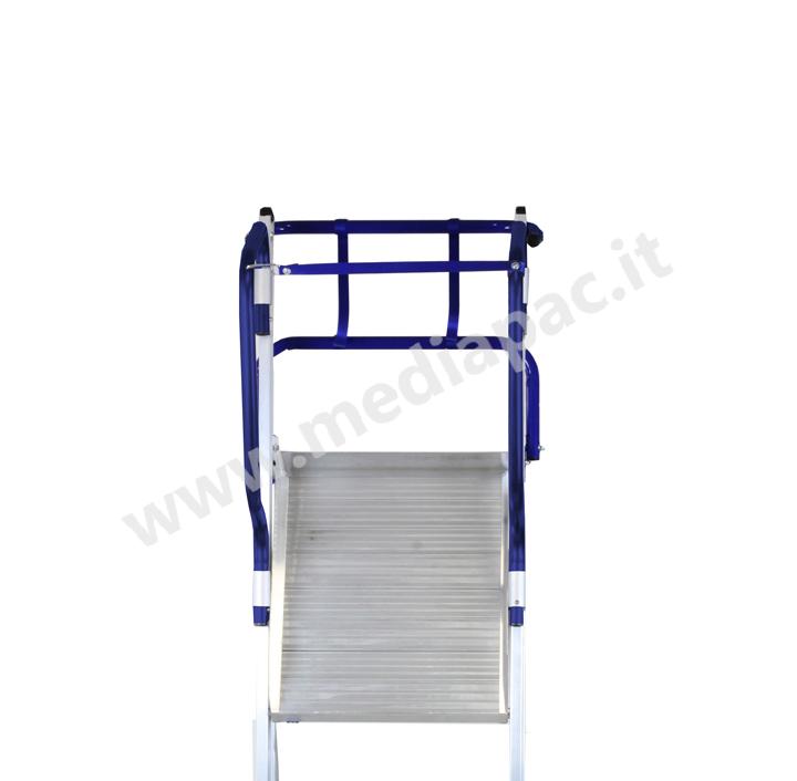 Piattaforma in alluminio rinforzato antisdrucciolo (cm 60x53) con sistema anti-apertura accidentale e fermapiede da 10 cm