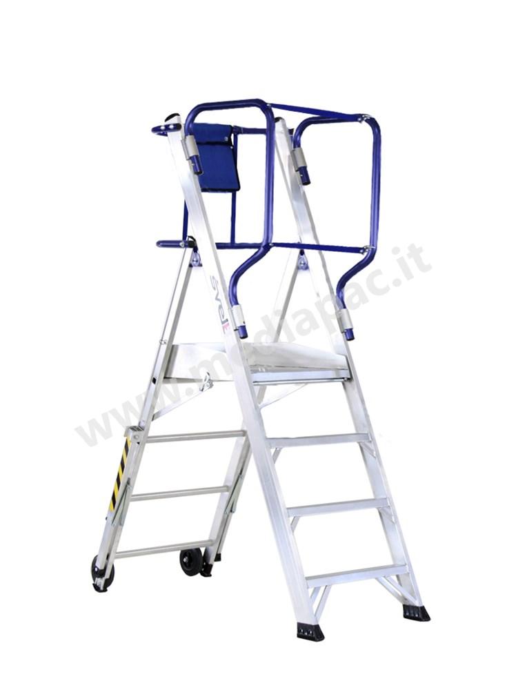 Scala a castello trasportabile a gradini con protezione a 360°