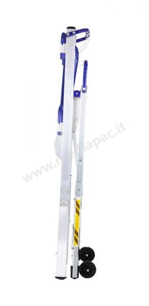 I corrimani brevettati sono richiudibili con un solo gesto e consentono di trasportare la scala con minimo ingombro