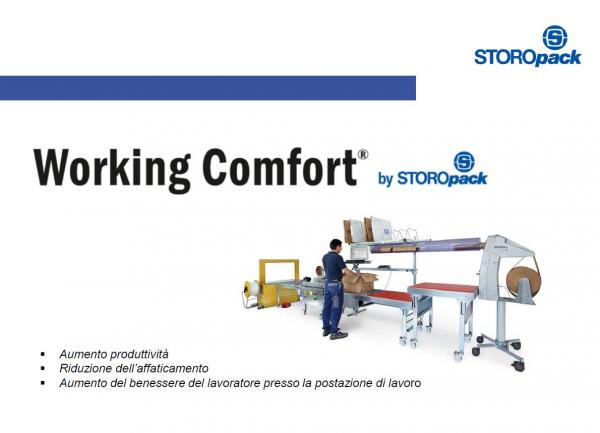 Immagina un ambiente di lavoro dove ogni movimento è pensato per massimizzare la produttività e il benessere del lavoratore. Con il nostro innovativo sistema di Working Comfort, questo è possibile! Ogni gesto superfluo durante i processi d'imballaggio