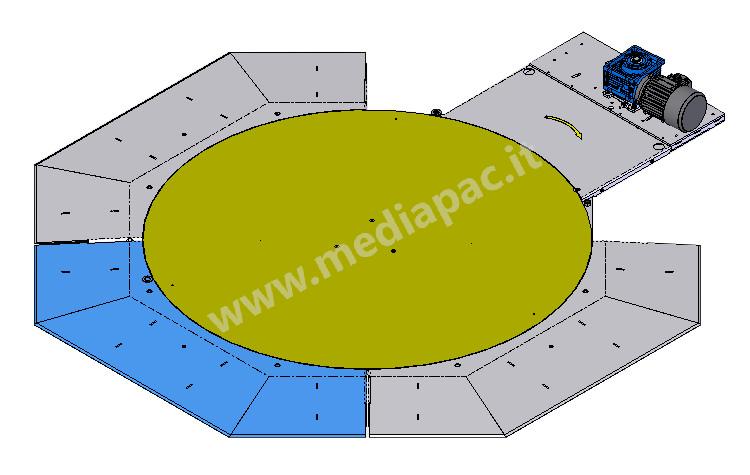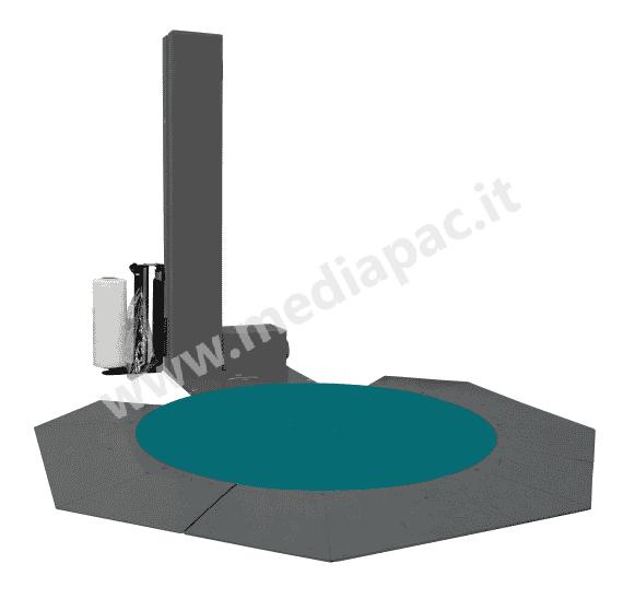 Tavola rotante di nuova generazione per avvolgere carichi pallettizzati di qualsiasi forma e peso con film estensibile anche macroforato. Si caratterizza per l'utilizzo e l'applicazione del film estendibile già prestirato e per le sue funzioni semplificate.