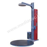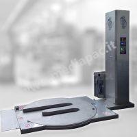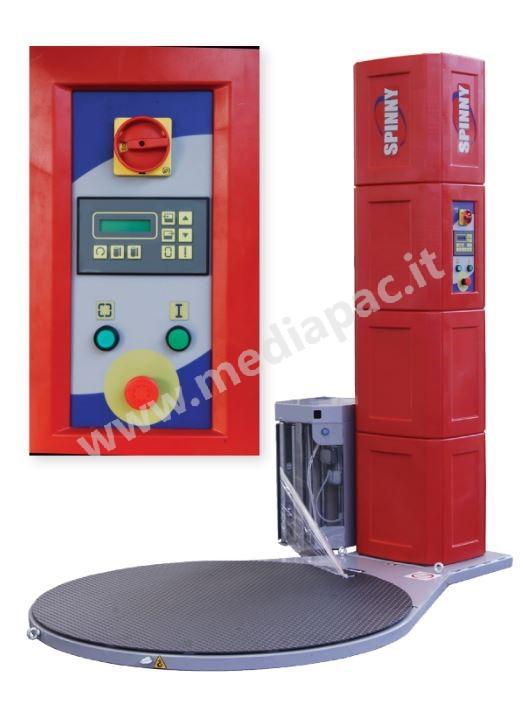 Fasciapallet dotato di prestiro motorizzato (in versione con 1 o 2 motori) per la tensione del film, che consente il massimo risparmio di materiali di consumo (fino al 400%). Con una capacità di produzione adatta alle medie aziende, Spinny