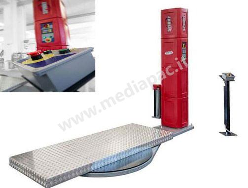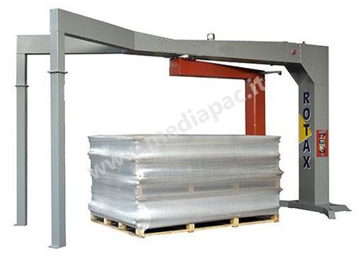 Avvolgitrice per linea di imballaggio automatica adatta all'avvolgimento con film estensibile di pallet di grandi dimensioni.