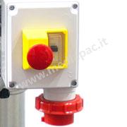 Quadro elettrico completo di fungo di emergenza, interruttore magnetotermico, spina di alimentazione a pannello 16 A. 4 poli CE