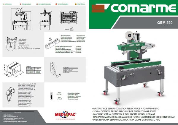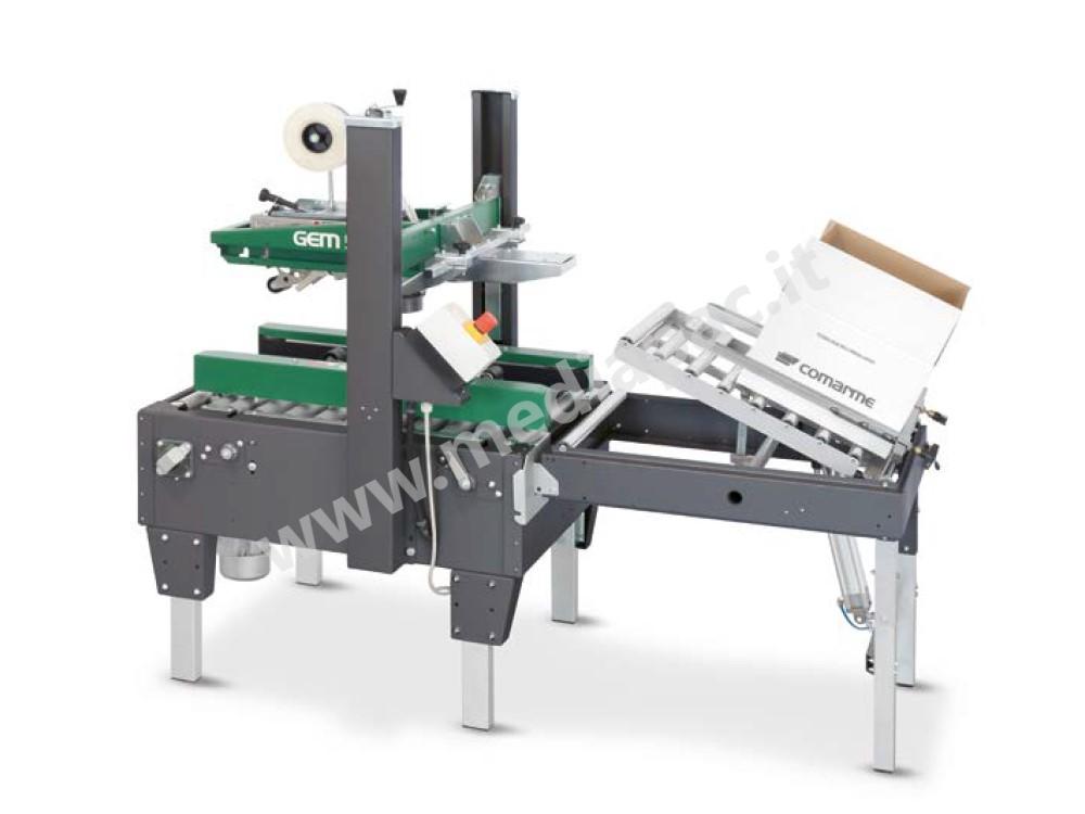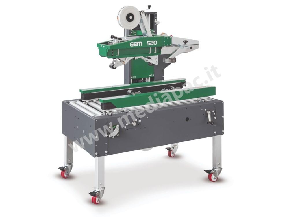 Nastratrice semiautomatica che sigilla con nastro adesivo la parte superiore ed inferiore delle scatole a formato fisso con dimensionamento manuale.