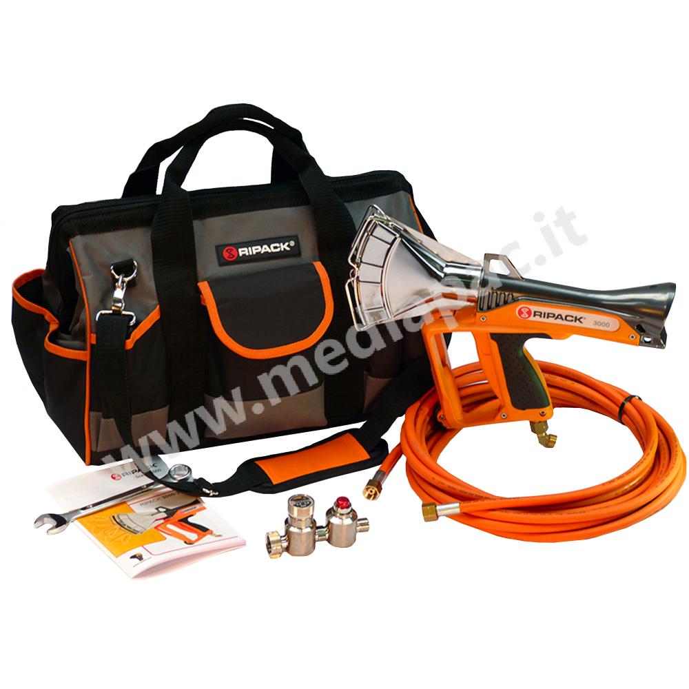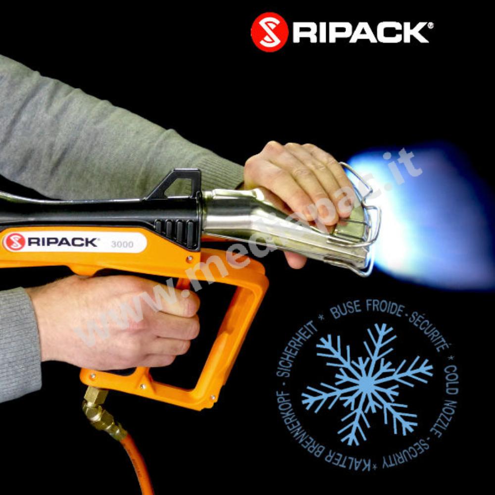 Dotata di un esclusivo sistema Securipack, la pistola termoretraibile Ripack 3000 offre il massimo livello di sicurezza per questo tipo di utensile