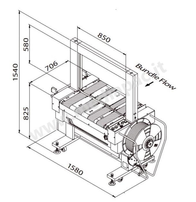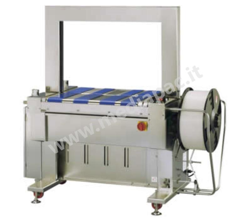 Reggiatrice automatica con tappeti motorizzati. Struttura in acciaio inox SUS 304.