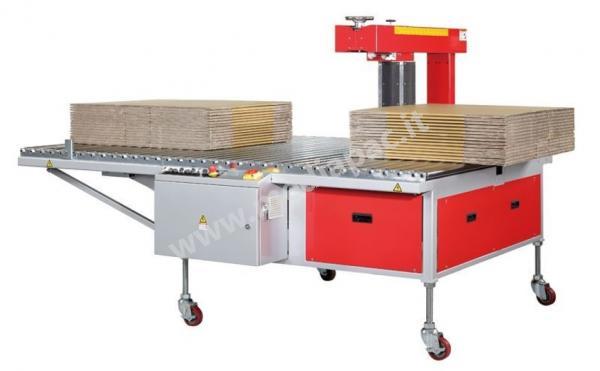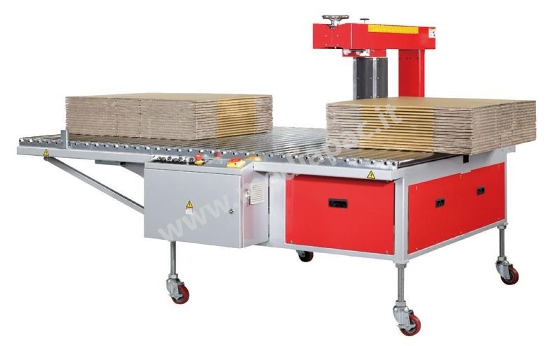 Ideato per la rotazione dei pacchi di cartone ondulato, questo consente di reggiare nel senso del “cannettato” il pacco di cartoni. Dotato di connettore scambio segali è facilmente interfacciabile con linee già esistenti.