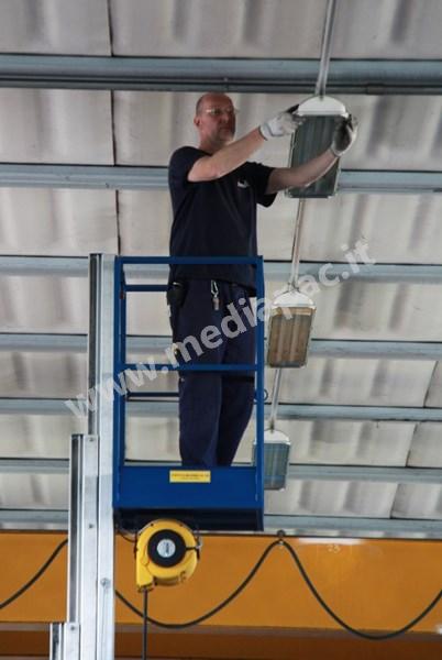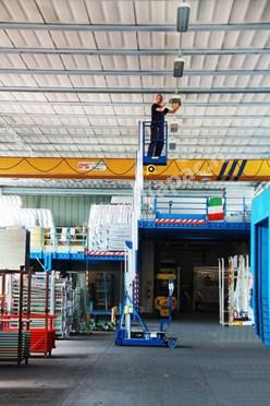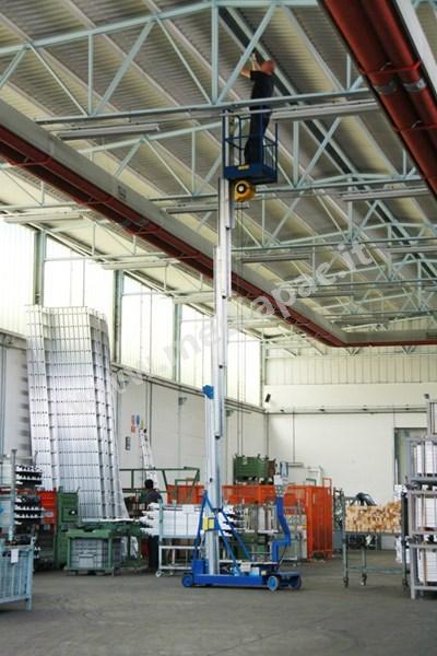 Non necessita di stabilizzatori per cui è utilizzabile anche dove gli spazi sono più limitati. Può essere spostata ed elevata con sistema semovente elettrico.