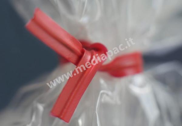 La piattina Twistband rivestita in plastica, viene normalmente utilizzata nel campo alimentare per la chiusura dei sacchetti o abbinata a macchine specifiche per la legatura di cavi elettrici.
