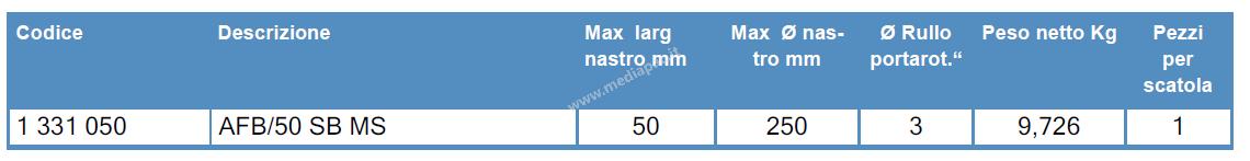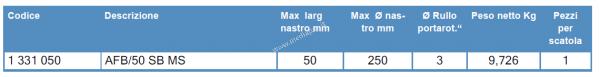Sono utilizzabili nastri doppio adesivo fino a 50 mm di larghezza e 250 mm di diametro esterno con anello interno diametro 76 mm (3”). La protezione del nastro può essere sia di carta siliconata che di PVC ondulato. In caso di nastri di diametro esterno