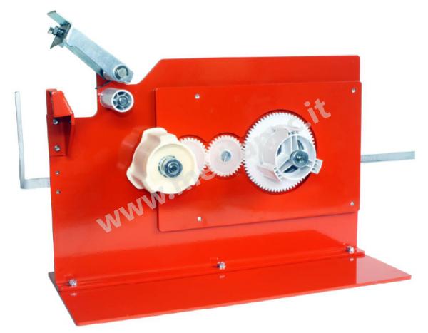 La rotazione del rullo portarotolo, conseguente al prelievo di nastro adesivo, genera la rotazione del rullo avvolgitore che stacca e riavvolge il liner. Il movimento tra rullo portarotolo e rullo avvolgitore è trasmesso da ingranaggi.