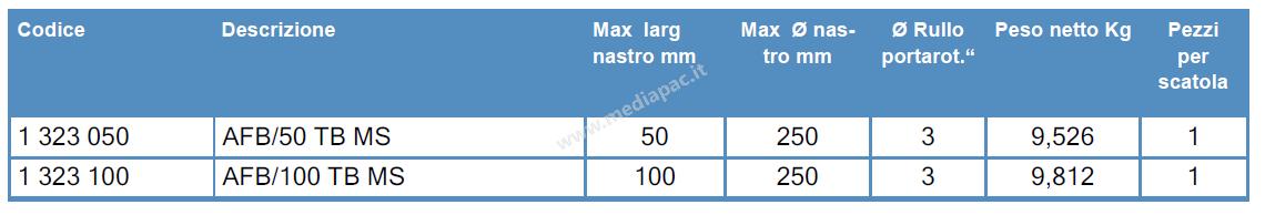 La lama dentata è in acciaio. Qualora risulti difficoltoso tagliare il nastro con la lama dentata, sono disponibili i dispenser AFB/50 SB provvisti di lama a cesoia.
