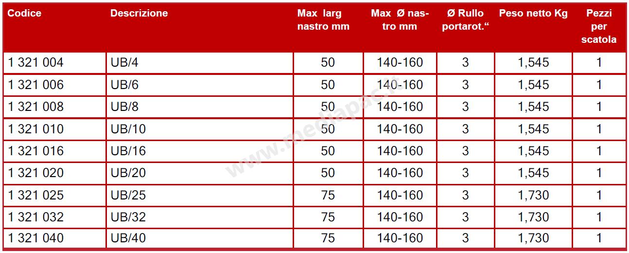 Si possono utilizzare nastri (con liner) fino a 140 mm o 160 mm (senza liner) di diametro esterno con anello interno da 76 mm (3”).