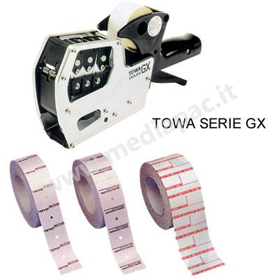Prezzatrice TOWA GX a 3 bande alfanumeriche/speciale a 10 colonne. Questa potente e indistruttibile prezzatrice è completa per ogni esigenza. STAMPA SU 3 RIGHE. È corredata complessivamente di 5 testine intercambiabili con le seguenti combinazioni: